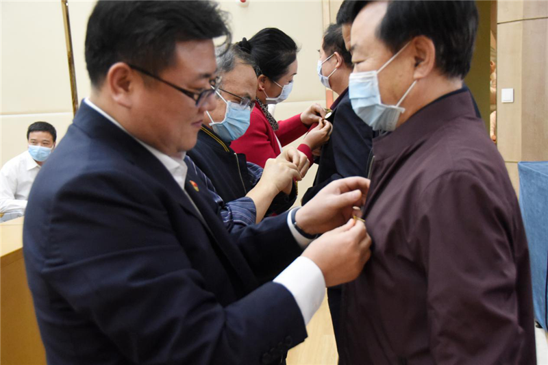 三位基建工程兵老兵的分享使青年員工們備受鼓舞,現(xiàn)場(chǎng)響起了雷鳴般的掌聲。工勘巖土集團(tuán)副總經(jīng)理馬君偉、閆京潔及總工辦高級(jí)顧問(wèn)郭清分別為三位老兵送上工勘五四青年節(jié)紀(jì)念章。